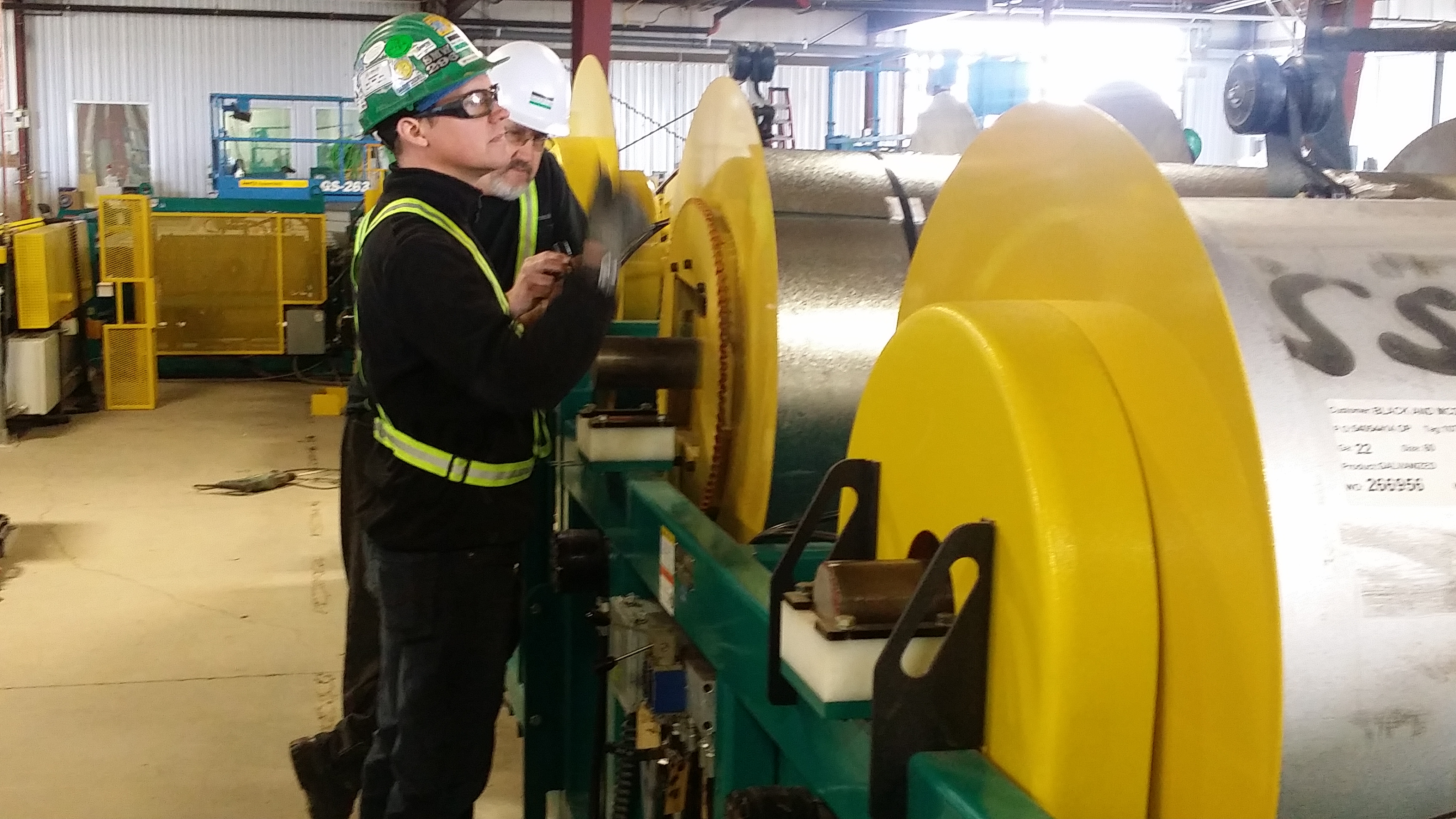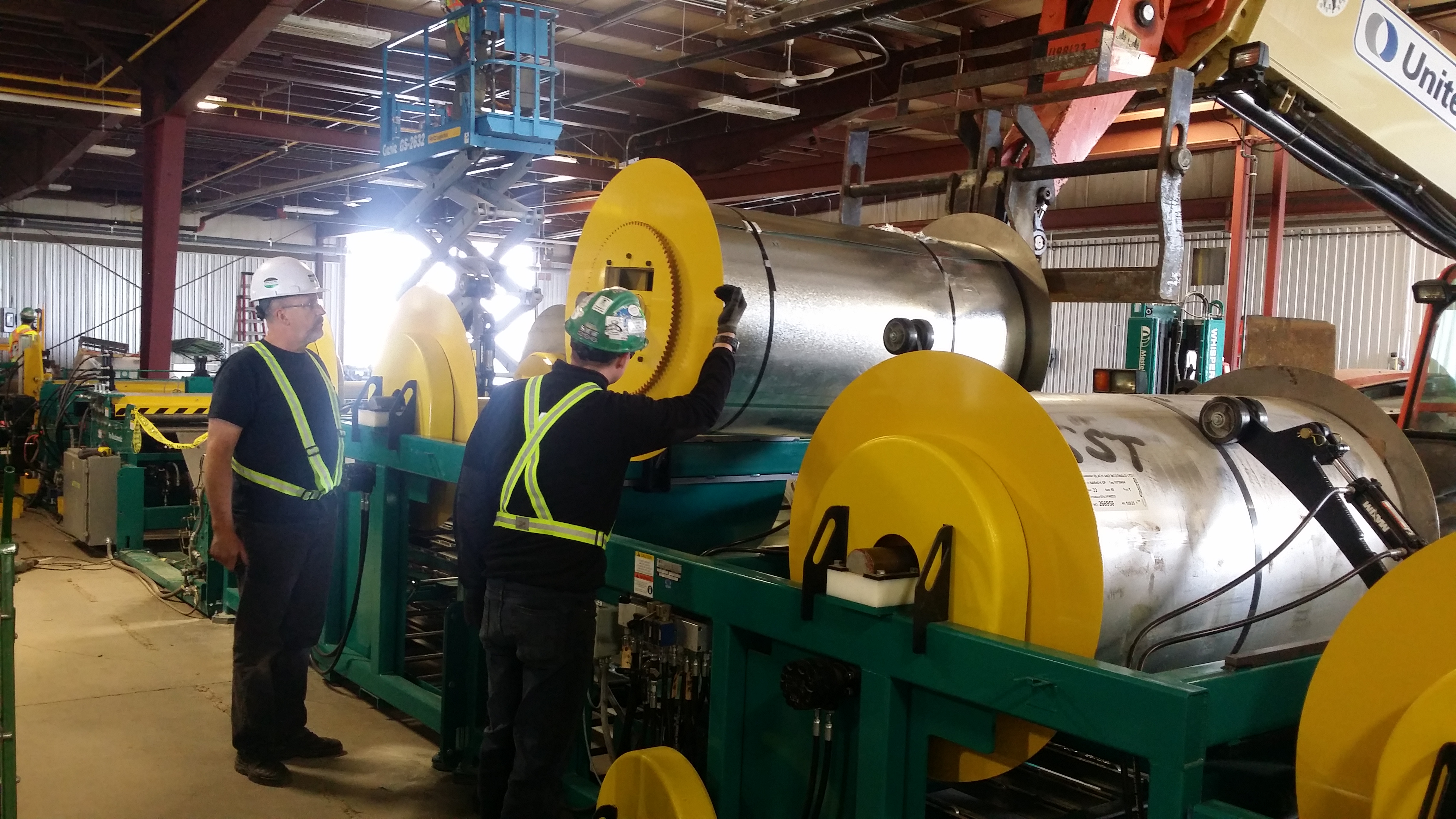 These pictures show the installation of the metal coil as well as lining up of the Straightener.