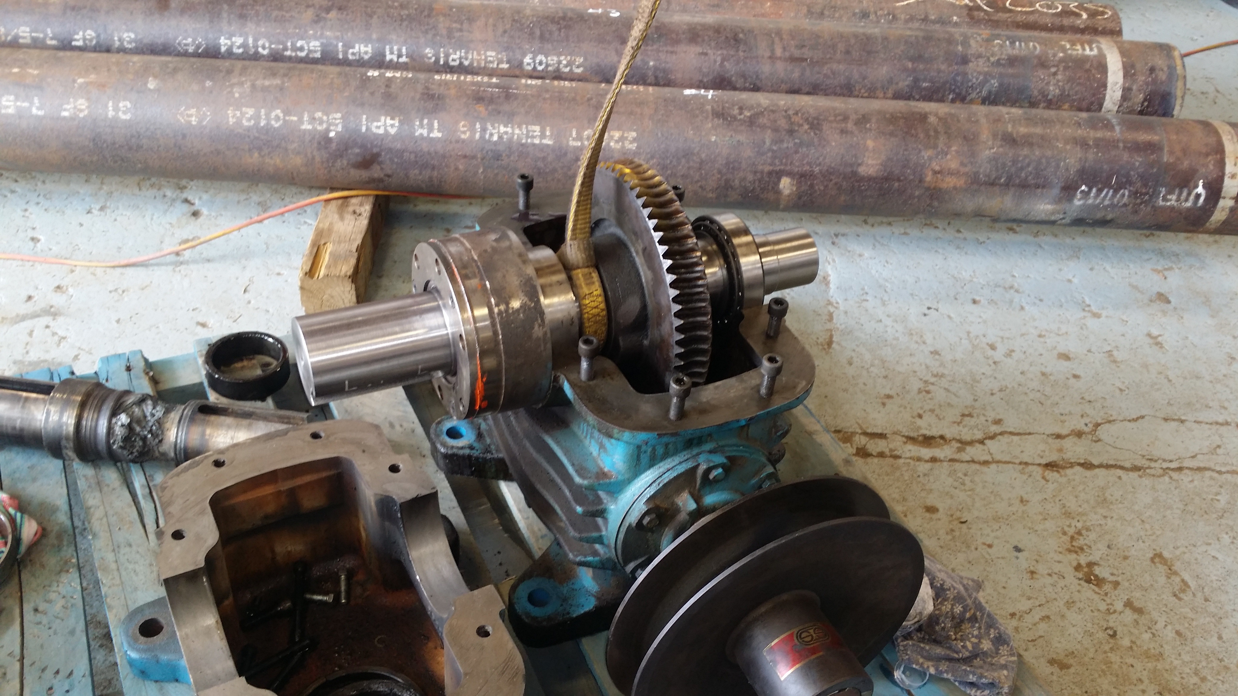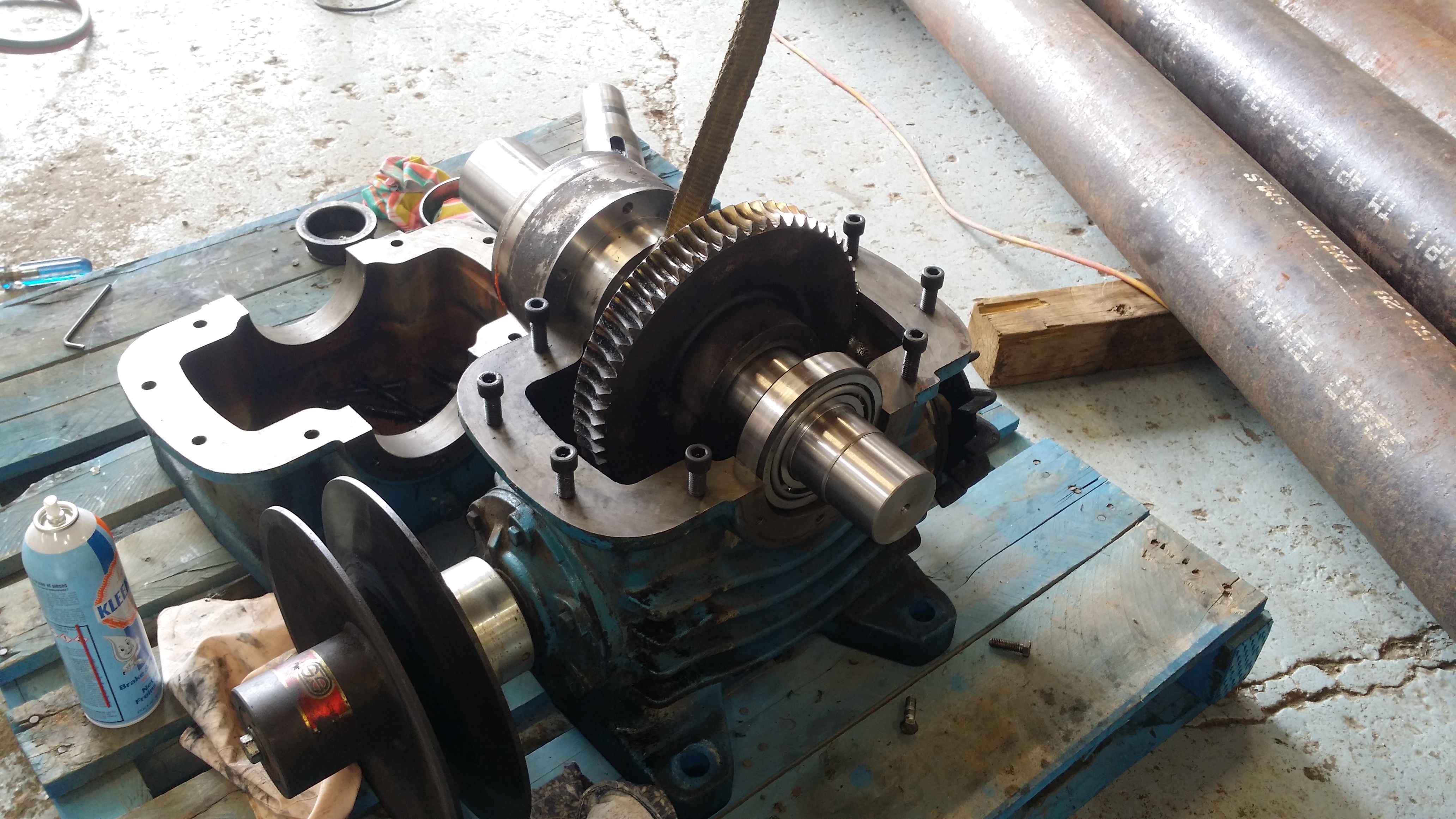 The Following Pictures show the Gearbox of a large Band Saw, needing a new shaft due to lack of lubrication to the Bearings. The sequence of pictures shows from start to completion and ready for Gearbox installation.